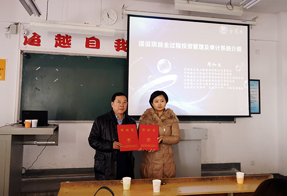 2014年12月16日上午,我公司董事長周和生先生向內(nèi)蒙古建筑職業(yè)技術(shù)學(xué)院工程管理學(xué)院捐贈(zèng)“建設(shè)項(xiàng)目全過程投資管理及審計(jì)系統(tǒng)”軟件,并向?qū)W院師生們講授“建設(shè)項(xiàng)目投資管理及審計(jì)信息化”課程,大力支持學(xué)校教學(xué)工作。