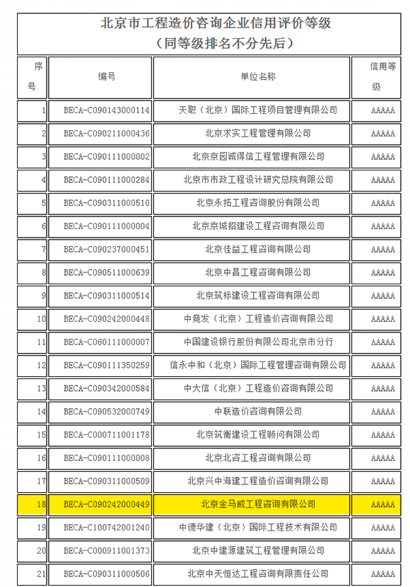 根據(jù)《關(guān)于開展2016年工程造價咨詢企業(yè)信用評價工作的通知》(中價協(xié)[2016]54號)文件的要求,北京市建設(shè)工程造價管理協(xié)會(簡稱京價協(xié))開展了北京市工程造價咨詢企業(yè)信用評價工作。