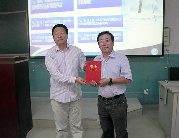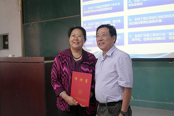 2014年9月13日,應(yīng)長春工程學(xué)院邀請,我公司董事長周和生先生為該校管理學(xué)院學(xué)生講授“建設(shè)項(xiàng)目投資管理及審計(jì)信息化”課程,且受聘為長春工程學(xué)院客座教授。我司向長春工程學(xué)院捐贈(zèng)“建設(shè)項(xiàng)目全過程投資管理及審計(jì)系統(tǒng)”軟件(價(jià)值145萬元),大力支持該校教學(xué)工作。