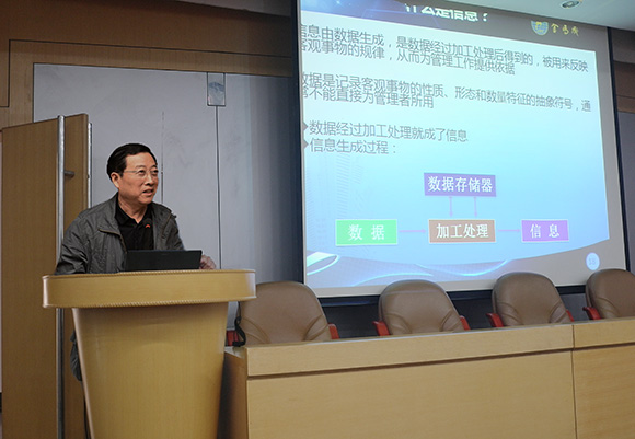 儀式結(jié)束后,公司董事長(zhǎng)周和生為學(xué)校相關(guān)部門工作人員及管理學(xué)院研究生作了題為“建設(shè)項(xiàng)目全過程投資管理及審計(jì)系統(tǒng)介紹”的學(xué)術(shù)報(bào)告。