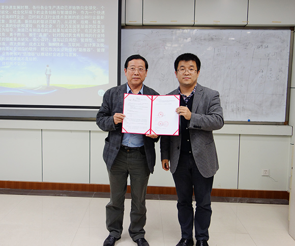 2014年11月14日下午,公司董事長周和生應(yīng)重慶大學(xué)邀請,為重慶大學(xué)建設(shè)管理與房地產(chǎn)學(xué)院學(xué)生及相關(guān)部門工作人員作了題為“建設(shè)項目全過程投資管理及審計系統(tǒng)介紹”的學(xué)術(shù)報告。并向?qū)W院捐贈“建設(shè)項目全過程投資管理與審計系統(tǒng)”軟件,大力支持學(xué)校教學(xué)工作。竹隰生院長代表學(xué)院出席此次捐贈儀式。