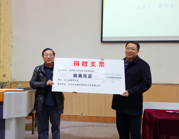 2014年12月5日下午,公司董事長周和生向貴州理工學(xué)院經(jīng)濟(jì)管理學(xué)院捐贈“建設(shè)項(xiàng)目全過程投資管理與審計系統(tǒng)”軟件,并向?qū)W院捐贈十萬元教學(xué)基金,大力支持學(xué)校教學(xué)和科研工作。